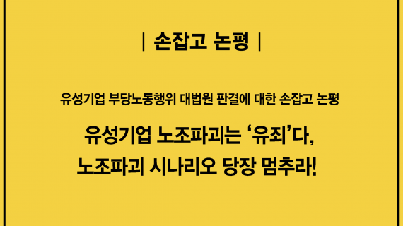 [유성기업 부당노동행위 대법원 판결에 대한 손잡고 논평] 유성기업 노조파괴는 ‘유죄’다, 노조파괴 시나리오 당장 멈추라!